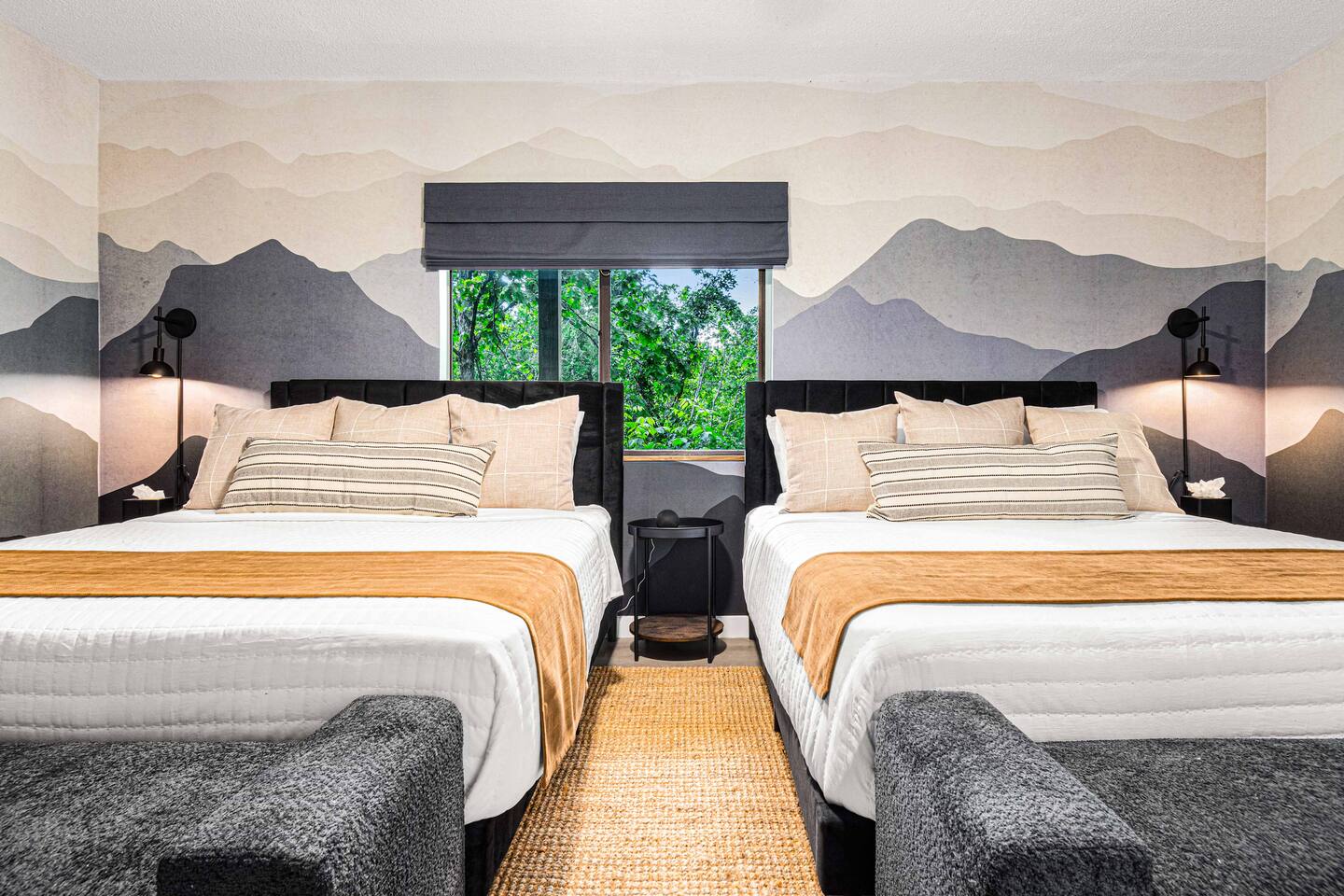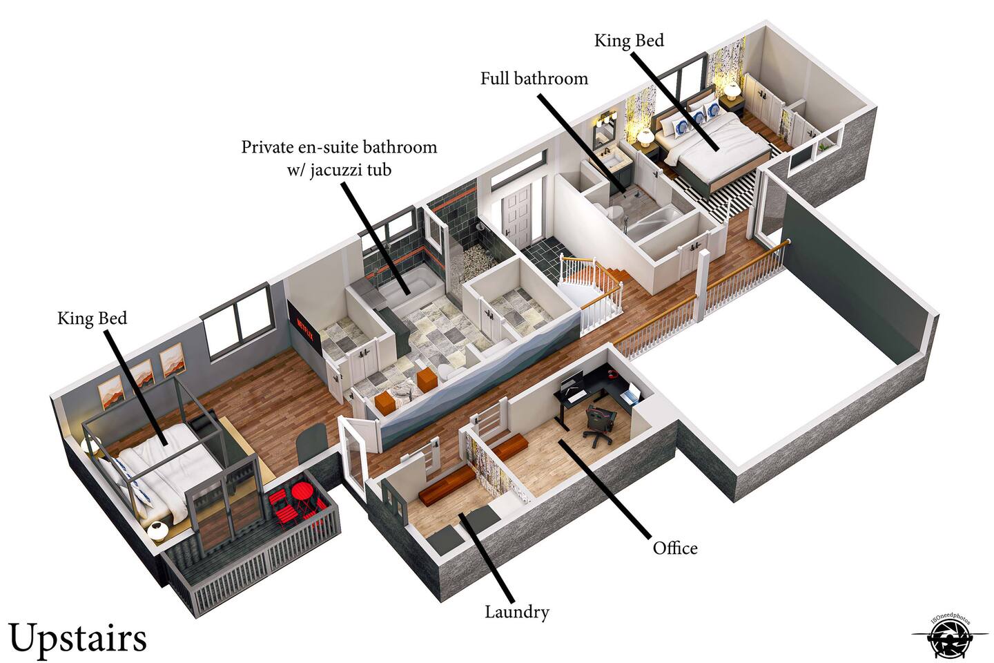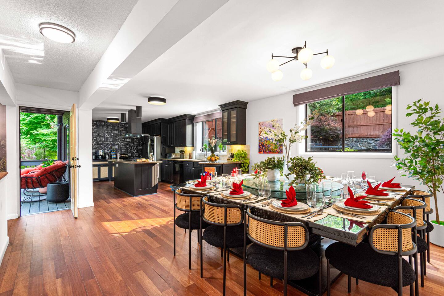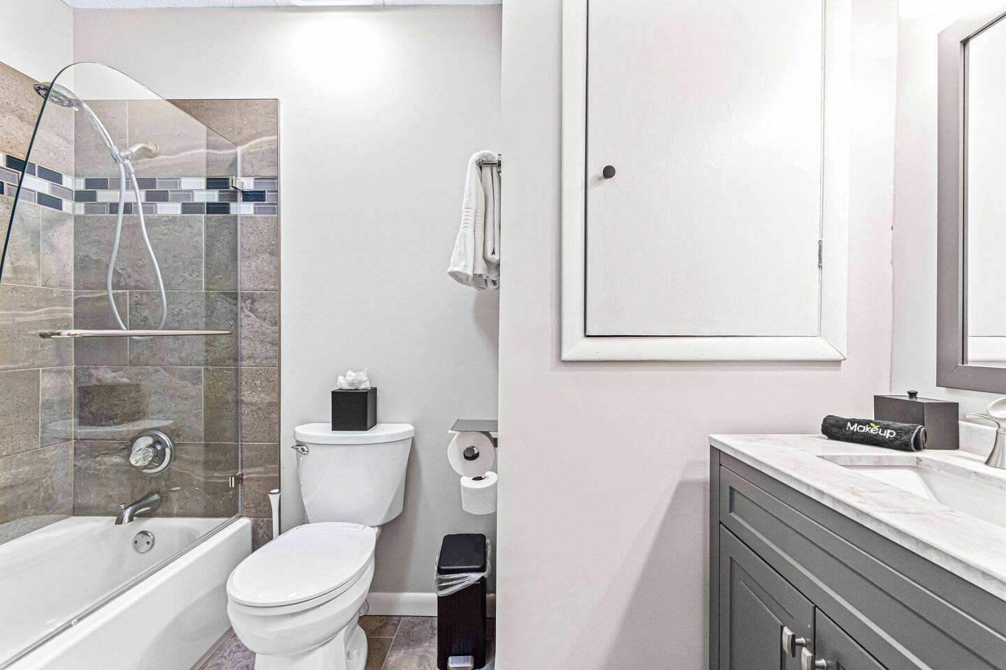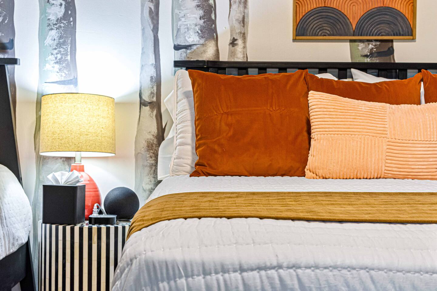 ★ OVERVIEW ★ Nestled in the heart of the breathtaking Blue Ridge Mountains and only a short 12-minute drive from the renowned restaurants and shops in downtown Asheville and a 5-minute drive from the charming town of Weaverville, this stunning designer retreat offers the perfect blend of luxury and fun. Surrounded by lush woodlands, this private 3,200 sq. ft. 6-bedroom, 4-bath mountain haven is on 1.2 acres and can accommodate up to 16 guests. It is designed for unforgettable gatherings, whether you're planning a family reunion, a getaway with friends, or a special celebration. With a fully equipped games room, a movie theater, a 2-lane bowling alley, ping pong, corn hole, a hot tub, fire pit, and mega chess, there is so much to do indoors and out that you may never want to leave. ★ LIVING AREA ★ The luxurious living room offers a serene retreat, featuring an expansive forest mural and a plush teal sectional adorned with vibrant orange cushions. The space is bathed in natural light from large sliding doors, leading to a tranquil deck with lush views. A cozy fireplace and lit art alcoves add elegance, while the modern decor and rich wood floors create a warm, inviting atmosphere perfect for relaxation and entertainment. ✔ Stylish Seating: Sink into the plush seating and indulge in absolute comfort. ✔ Modern Decor: Enjoy the curated ambiance created by the contemporary furnishings and design. ✔ Roku Smart TV: Relax after a day of hiking while watching the 65” TV. ✔ Amazon Echo: Listen to your favorite tunes on this Wi-Fi-enabled speaker. ✔ Gas Fireplace: At the flip of a switch, turn on the ambiance and enjoy the amber glow of the logs while chatting or watching TV. ✔ Games: Have fun with games night! Tons to choose from, including: Monopoly, Dominoes, Bingo, Charades, Codenames, Jenga, Uno, cards, and Jenga. ★ KITCHEN & DINING ROOM★ The gorgeous open kitchen and dining area seamlessly blend style and functionality, making it ideal for both culinary adventures and relaxed mornings. The chef’s kitchen, with its stainless steel appliances, is a culinary haven, perfect for creating memorable meals. The adjacent coffee bar is a cozy nook offering a variety of brews and syrups for coffee, tea, and hot chocolate enthusiasts. Gather around the custom-designed 12-person dining table and enjoy memorable meals in style. ✔ Designer Kitchen: Experience a well-appointed kitchen featuring an island that seamlessly combines elegance with functionality. ✔ Kitchen Amenities: Coffee maker (drip coffee maker & Nespresso), basic cooking essentials (seasonings, condiments, oil, vinegar, organic sugar, coffee, tea, hot chocolate etc.), high-end Hexclad cookware, microwave, full-sized fridge, freezer with ice-maker, gas range, gas oven, dishwasher, rice maker, toaster oven/air fryer, double waffle maker, and blender. ✔ Dining Area: Share delicious meals and create lasting memories around the chic dining table with seating for 12 and a large glass lazy-susan. ★ BEDROOMS ★ The designer decorated bedrooms all offer a tranquil escape, inspired by the surrounding mountains and forests. Each room features stunning nature-themed murals or pictures, creating a serene ambiance. Plush, premium bedding, adorned with Egyptian cotton sheets and elegant decor, complements the natural beauty, while large windows or sliding glass doors offer breathtaking views. Thoughtful touches, such as cozy seating and soft lighting, enhance the restful atmosphere, making these bedrooms a perfect retreat after a day of exploring. ✔ Luxurious Beds: Drift into dreamland on our premium beds with 4 pillows and Egyption cotton sheets. There are extra blankets if needed. ✔ Serene Ambiance: Find solace and tranquility in the tastefully designed bedrooms. ✔ Bedroom Amenities: All bedrooms include Roku Smart TVs, Amazon Echo speakers, ceiling fans, and blackout blinds or curtains. ✔ Primary Bedroom: King canopy bed with private balcony, two walk-in closets, and an en-suite bathroom with jacuzzi tub, separate shower, and makeup table. ✔ Bedroom 2: King bed with en-suite bathroom and bath/shower combo. ✔ Bedroom 3: Queen bed with en-suite bathroom with a shower. ✔ Bedroom 4: Two queen beds and sliding glass door access to outside, along with shared bathroom access with a shower. ✔ Bedroom 5: Two queen beds, along with shared bathroom access with a shower. ✔ Bedroom 6: King bed, along with shared bathroom access with a shower. ★ BATHROOMS ★ The four bathrooms are elegantly designed, each offering a unique blend of style and comfort. Featuring modern fixtures, glass vessel sinks, and sleek tile work, they provide a spa-like experience. Large mirrors and ample lighting enhance the space, while thoughtful details, such as plush towels and high-quality toiletries, ensure a luxurious stay. These bathrooms perfectly complement the serene mountain setting, offering a refreshing retreat. ✔ Modern Bathrooms: Refresh and rejuvenate in the elegantly appointed bathrooms. ✔ Bathtubs/showers: There are two bathtubs (one of them is a jacuzzi tub, one is a combo shower/bathtub), and three stand-alone showers. ✔ Essential Amenities: Enjoy the organic shampoo, conditioner, and body wash along with Q-tips and cotton balls. ★ INDOOR AMENITIES ★ ✔ Theatre: A fully decked out home theatre for 8 guests with a 100” screen, surround sound, leather reclining chairs, a fiberoptic star ceiling, and a snack bar. ✔ Games Room: Challenge your friends or family to a game of pool, poker, or Ms Pac-Man. The room also features a 16’ ceiling, a 65” Roku smart TV, classic arcade games, and board games. ✔ Office: Including a stand-up desk, perfect for digital nomads, helping you stay productive even while on vacation. ✔ Air conditioning/Heating: A central heating and cooling system is installed throughout the house. ✔ Laundry Room: Brand new high-efficiency washer and gas dryer for any laundry needs. ✔ I