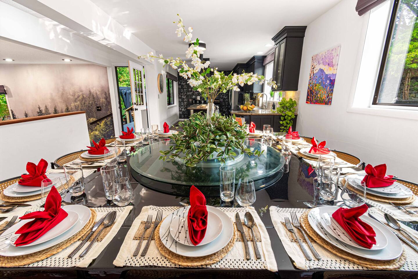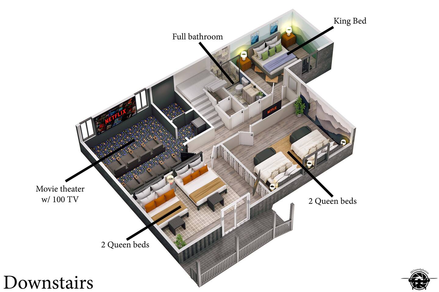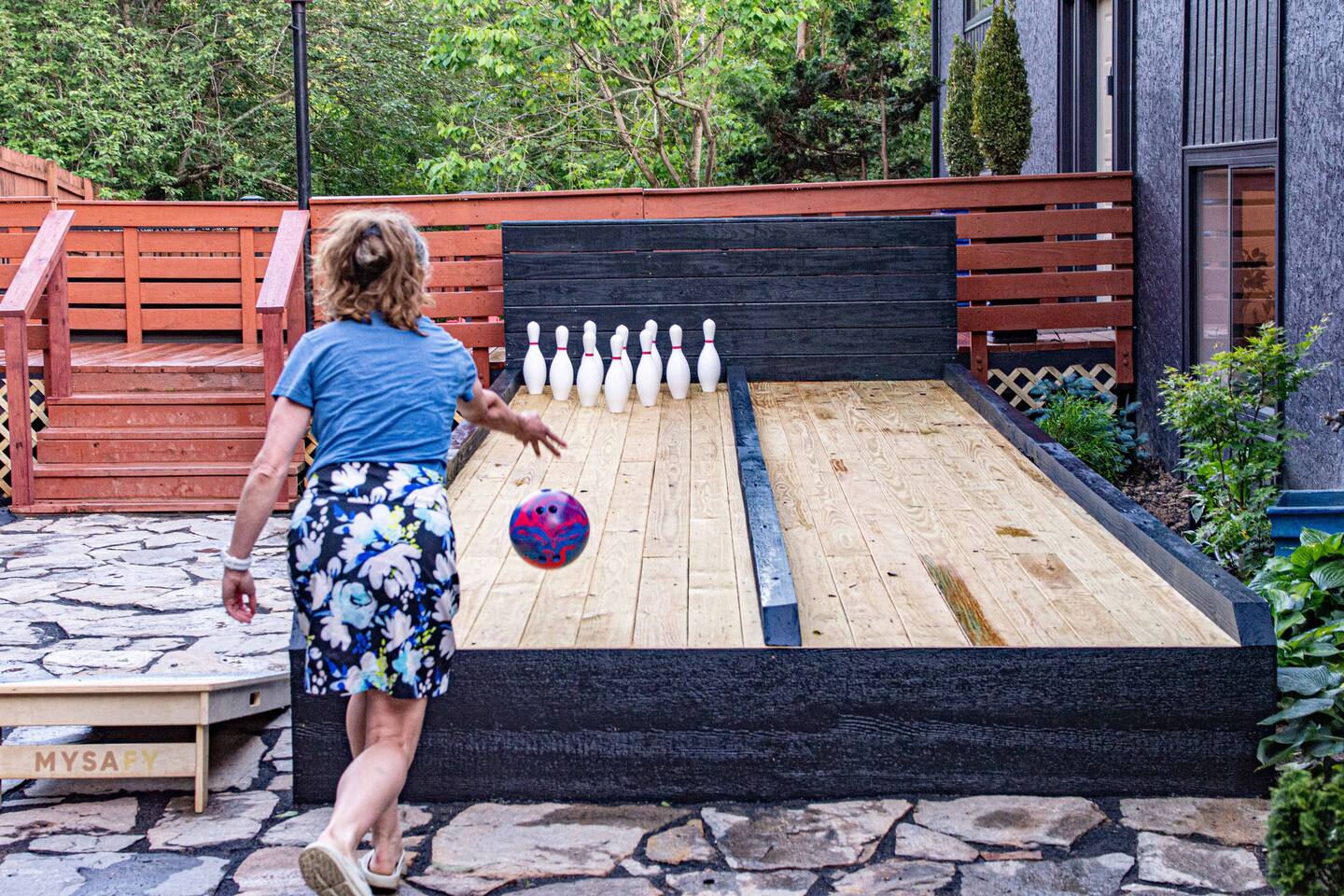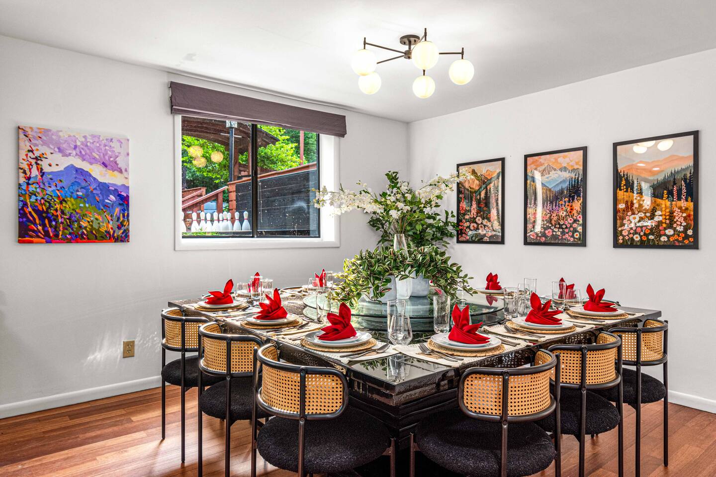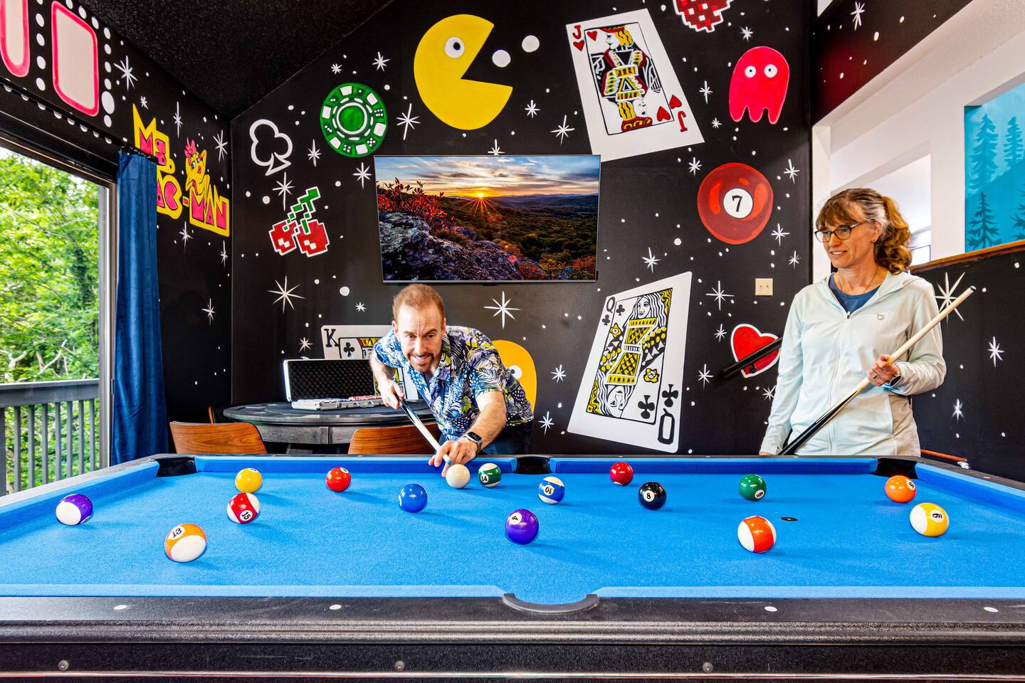★ PROPERTY HIGHLIGHTS ★ ✔ Spa: Unwind in the 8-person spa. ✔ Games: Ping pong, bowling, mega chess, pool, Ms. Pac-Man, poker, and more. ✔ Theatre: Enjoy a 100” screen, surround sound, and comfy leather chairs. ✔ BBQ: Savor BBQ meals al fresco at a table for 12. ✔ Fire Pit: Gather with 12 friends, wine in hand, by the crackling fire.